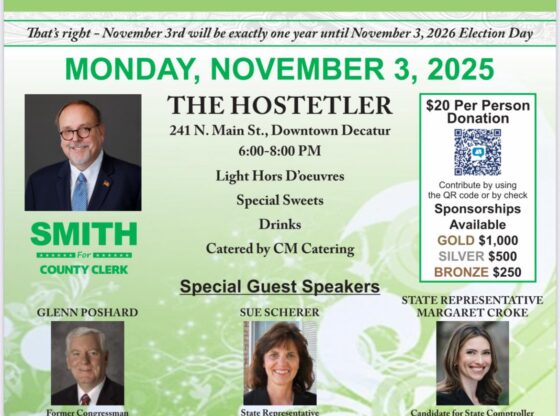 The public is invited to join in support of Bryan E. Smith for Macon County Clerk at his “365 Days to Victory” fundraiser.