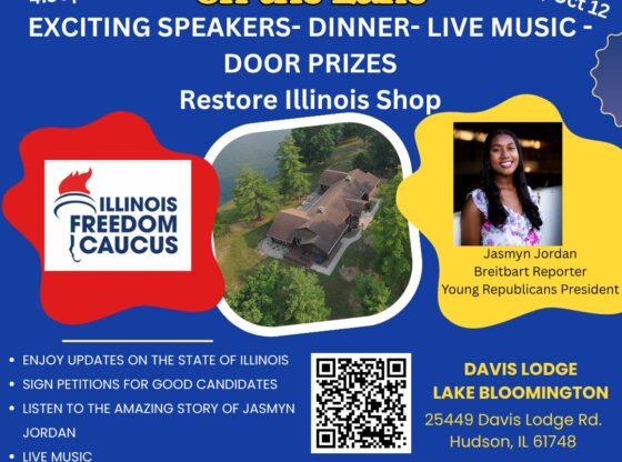 The McLean County Republicans are holding their Freedom On The Lake Rally on October 12th at 4:30pm in Hudson Illinois. At the Davis Lodge at Lake Bloomington, the event promises an evening of music, great speakers, great food, and great people. Candidates and petitions will be on hand. Tickets are only $15 but are limited. To secure yours, visit: https://www.mcleancountyrepublicans.org/freedom_rally